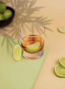 Ingrédients pour 6 personnes : 36cl de rhum blanc agricole, 12cl de sirop de canne roux, 6 quartiers de citron vert